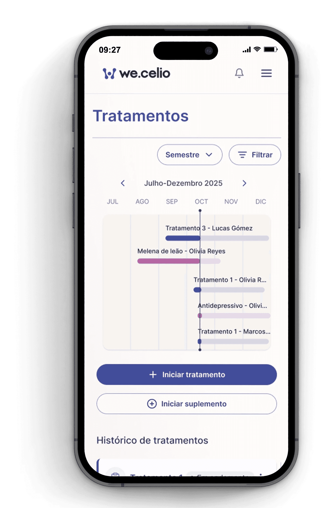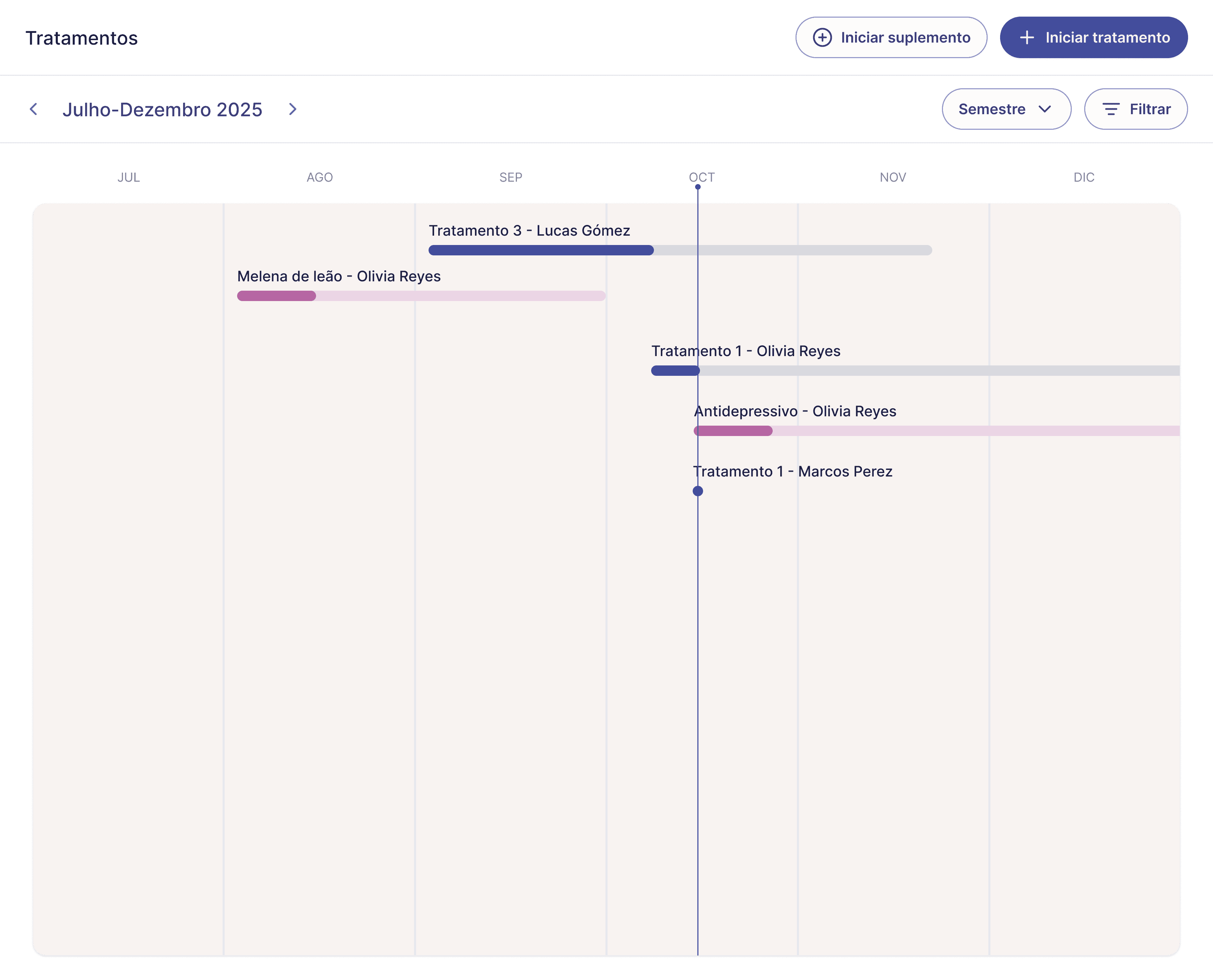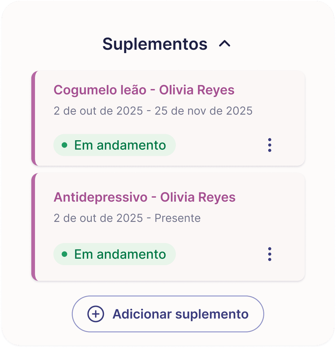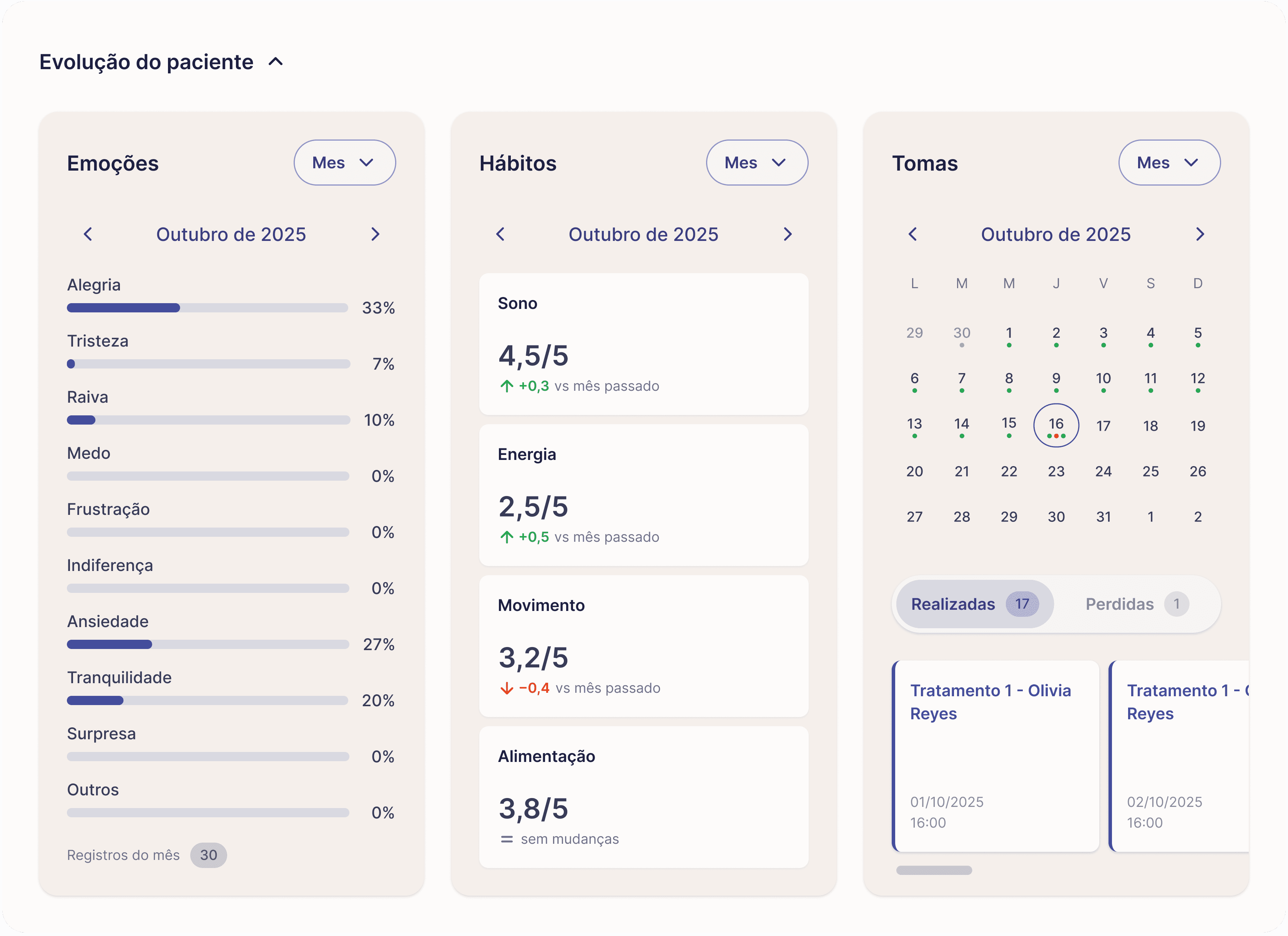Acompanhe a dose, os sintomas e o progresso para entender melhor cada jornada.